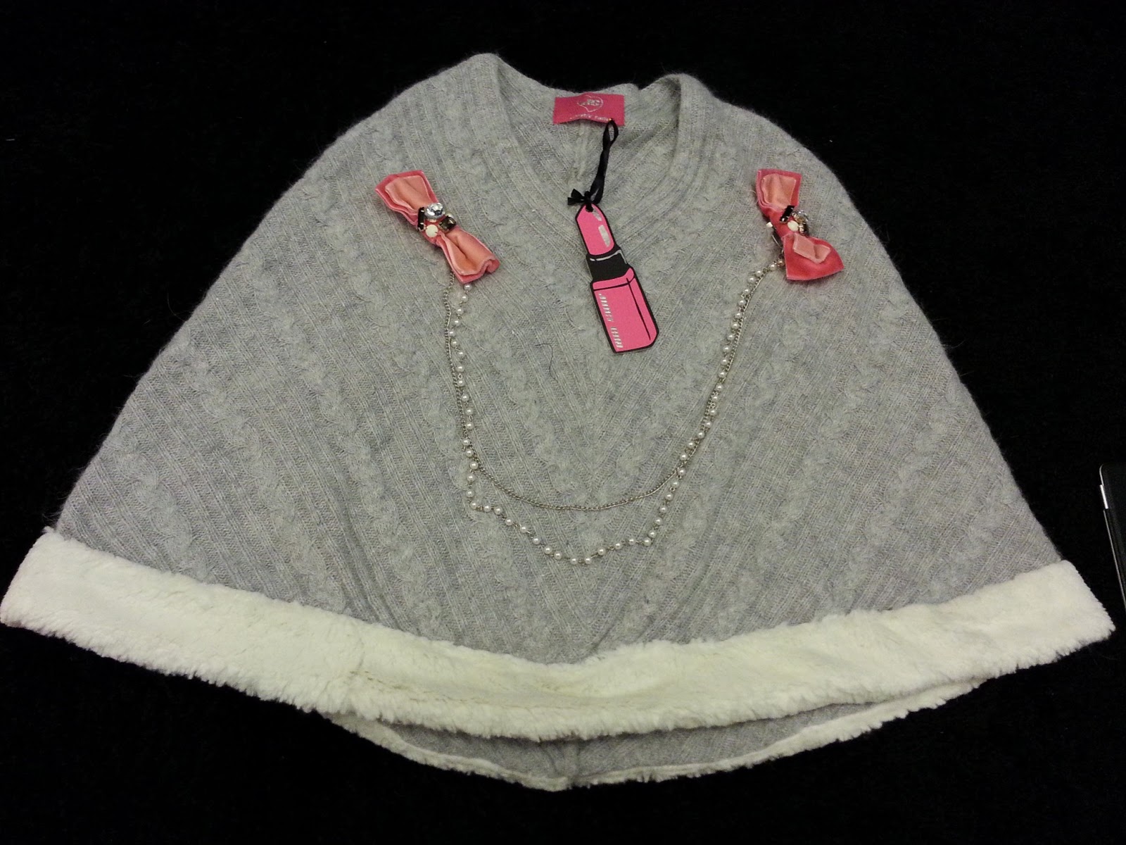 昨天晚上見到Juicy Girl整間店都沒有人,而且新貨全部半價,特價貨兩折。平時對於Juicy girl也沒有特別愛好,而且覺得衣服的質素與價錢不成正比,動輒一千多元一件衣服。不過兩折或半價時也可以看看。所以今次趁著沒有人,一眼便選到一件圍肩了。十分可愛,正適合新年時的某些場合著呢。原價二千多,2折後$210, 執到寶。(偷笑)