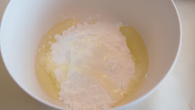 之後就是調糖霜糊,用來畫曲奇面的。糖霜加入蛋白攪勻後用打蛋器攪拌成雪白色。