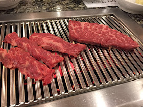 我們之這次帶小米來,可以用到tote seat,將小米固定在椅上,我們叫了兩SET牛肉燒烤,點了兩個牛排骨湯,蔬菜拌飯,加上他們送上非常多的小菜以及蒸蛋..我們吃得非常滿足呢。大家都很喜歡牛排骨湯,米米都連飲兩碗湯…再加上蔬菜拌飯有很多蔬菜,他們見有小朋友一起,就直接給我們剪刀剪碎,最好自己帶小剪刀方便些,也見是小朋友,就換了膠杯給小米,另外他們送的蒸蛋,米米非常喜歡吃…自己吃了差不多一份,他們見到小米喜歡吃,也另外再送了一份給小米。還有他們會幫忙烤牛肉,美味XD最重要的是,這裡有侍應懂得用普通話溝通。這餐用了大約HKD700。